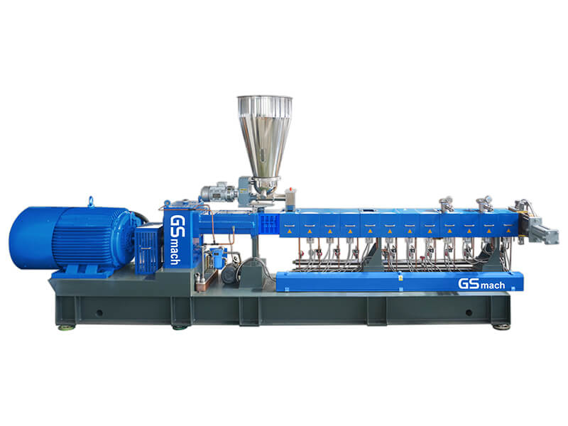 1. Extrudeuse bi-vis avec fourreau de haute précision et combinaison modulaire, foliation latérale, changement de couleur facile.